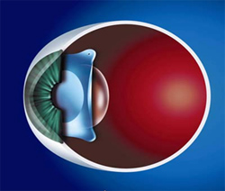 レーシックやPRKのようにエキシマレーザーを使って近視矯正をするのではなく、白内障の手術のように、眼内に人工のレンズを入れて、近視を矯正する方法です。白内障の手術と違う点は、白内障手術では、濁った水晶体を取り除き、その代わりに人工のレンズを眼内に入れるのに対して、有水晶体眼内レンズは、水晶体は取り除かずに、虹彩と水晶体の間(後房)に人工のレンズを入れます。